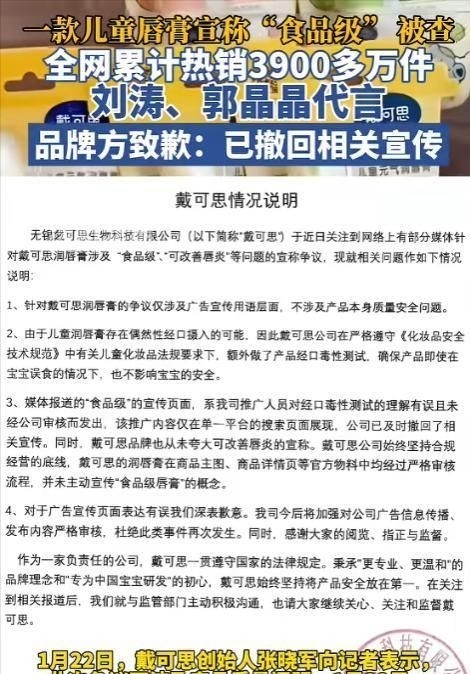 目前,戴可思案件仍在依法调查中,预计结果将以行政处罚为主——罚款加限期整改。对于年销十亿的企业而言,经济代价或许有限;但对于郭晶晶而言,这场风波带来的职业影响将持续深远。