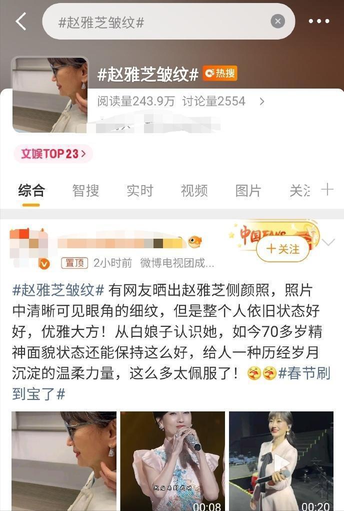 早年她曾以 " 不老女神 " 的标签出圈,但出道整整 50 年后的今天,赵雅芝已经 73 岁了,有些皱纹实在不算奇怪。